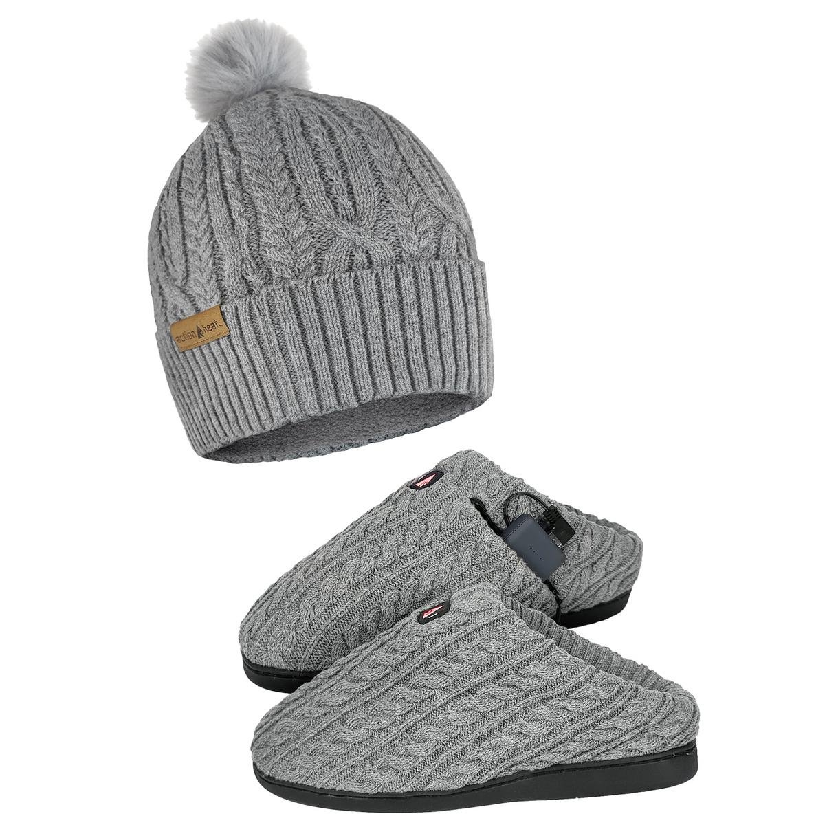 Saip 5V Battery Heated Cable Knit Hat & Slippers Bundle
