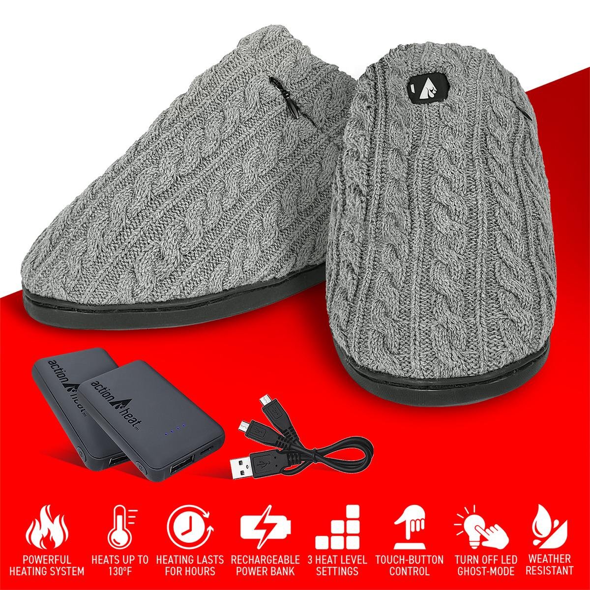 Saip 5V Battery Heated Cable Knit Slippers