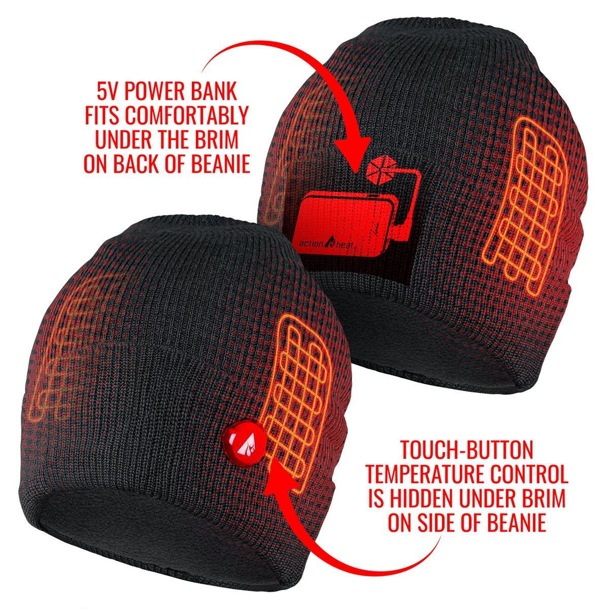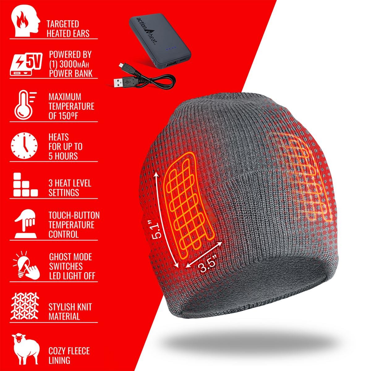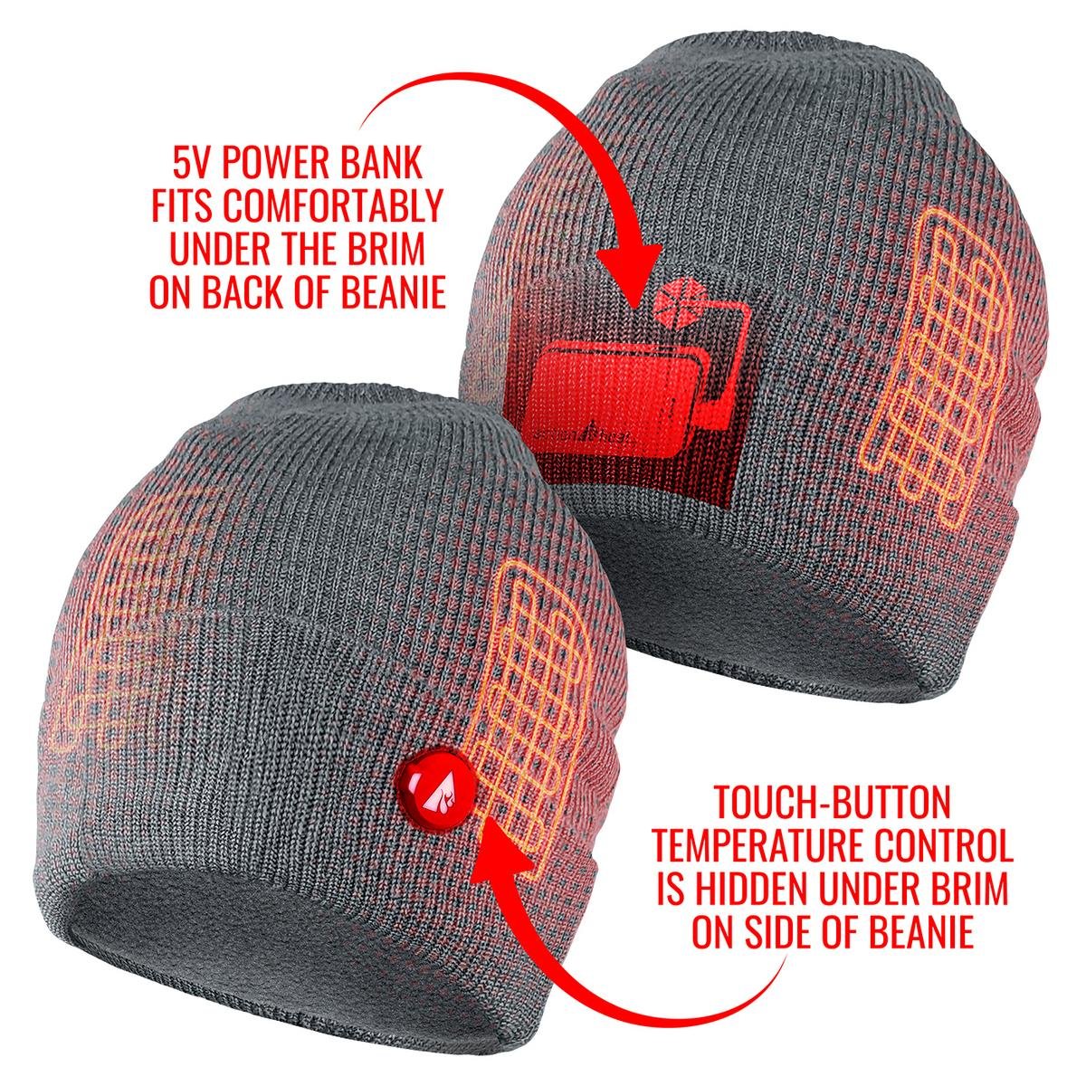 - Patented Technology: The 5V Battery Heated Knit Hat features advanced heating pads on the ears, which offers targeted heating to keep you warm. It is powered by a compact 5-volt rechargeable battery.