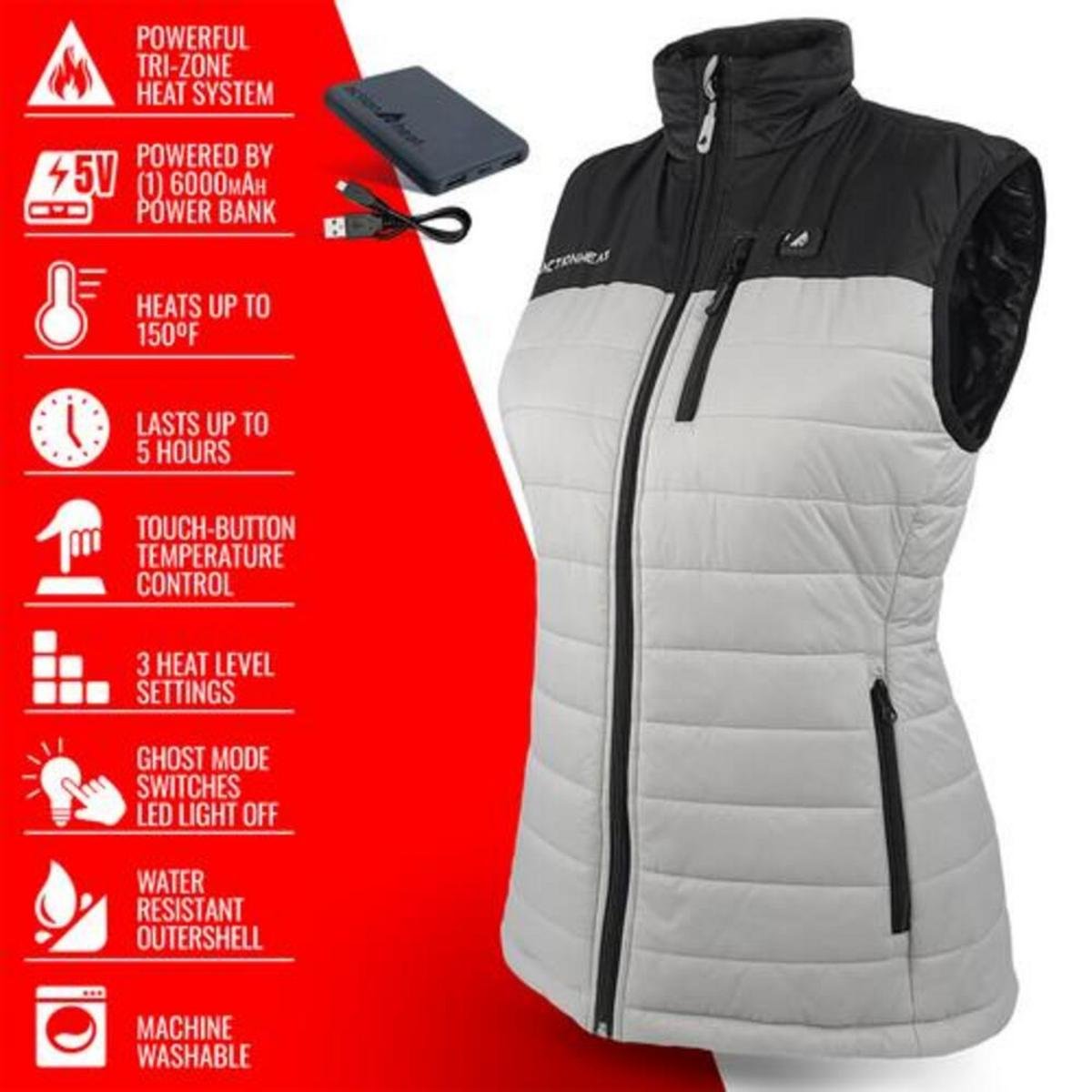 - Action Wave Heating Technology: This puffer vest features state-of-the-art heating panels powered by a 5V battery. These integrated heating elements provide efficient warmth to key areas of your body, such as the core and lower back, ensuring you stay cozy even in frigid conditions.