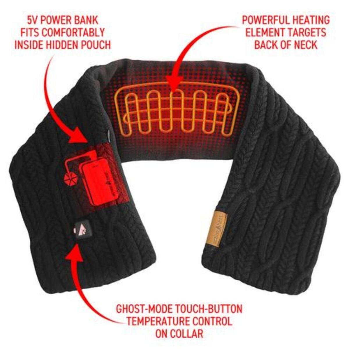 The 5V Battery Heated Cable Knit Wrap Scarf is a stylish option to keep your neck warm & comfortable when the weather turns cold. Enjoy hours of soothing warmth on the back of your neck with just a push of a button.
